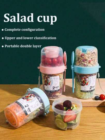 1 件 3 合 1 多功能沙拉杯 - 可用作便携式午餐盒、沙拉搅拌机、沙拉容器、食品盒、饮料杯、减肥餐盒、带叉子的牛奶杯便携式水果蔬菜零食杯,适用于早餐、酸奶、减肥、圣诞礼物和生日礼物 - 彩色 - 查看 6