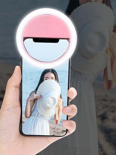 1 件 3 级亮度可调环形灯夹式美颜自拍灯,通用 - 粉色 - 查看 1
