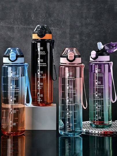 1 个 33 盎司(约 1000 毫升)渐变色水瓶,带时间标记,激励性,防漏,适合健身、健身房、户外使用,防漏水瓶,由涤纶制成,宽口,包括清洁刷,适用于旅行、家庭、学校、办公室(1 瓶),适合学校、露营和徒步旅行 - 粉色 - 查看 12