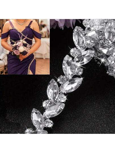 1条35.43英寸水晶水钻缝纫工艺链,优雅简约身体链,水晶水钻装饰链,爪链,水晶水钻链,闪亮DIY装饰,服装装饰可调节水晶肩带配饰,婚礼缝纫装饰配饰,奢华水晶水钻饰边 - 彩色 - 查看 11