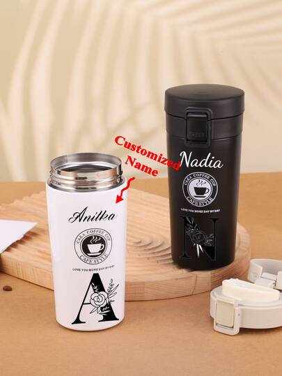 1个380毫升可定制不锈钢真空保温咖啡杯,创意手柄马克杯,便携式车载杯,办公室卧室水瓶,礼品之选,适合送礼和自用