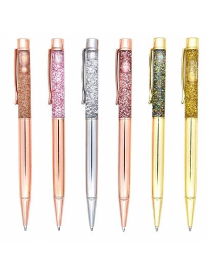 1入/3入/6入閃亮浮砂閃光金屬圆珠筆辦公用品1.0mm黑墨水 - 黑色 - 查看 6