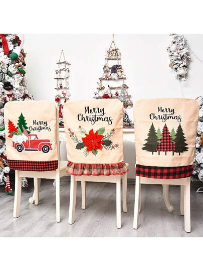 1 件/3 件套圣诞椅背套,卡通刺绣亚麻椅套,创意圣诞红花、圣诞树、红色卡车装饰椅套,防尘家居装饰,适用于客厅、厨房、餐桌、派对、圣诞节 - 彩色 - 查看 7