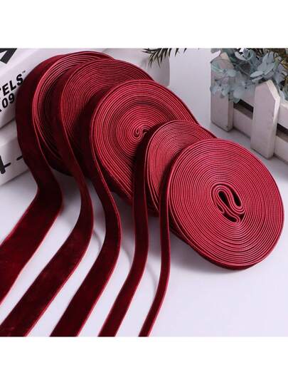 1条4.57米酒红色单面无弹力彩色植绒缎带,植绒缎带,植绒缎带蝴蝶结DIY,适用于服装、圣诞树、橱柜、圣诞节、情人节等节日装饰(由于手工测量,长度可能略有不同) - 暗紅色 - 查看 5