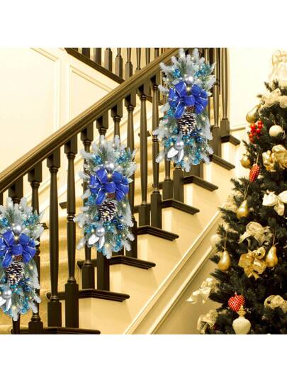 1入組45cm聖誕樓梯裝飾花環帶led燈飾,北歐風情家居佈置