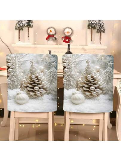 1 件/4 件/6 件/10 件圣诞迷你松果、珍珠、闪光装饰圣诞树,搭配银色装饰树、白色球印花毛绒椅套、可拆卸短毛绒材料椅子保护套,适合所有季节,节日装饰椅套适用于餐厅、客厅、带靠背保护的家用椅子,适合餐厅、办公室、客厅、酒店和家居装饰 - ZYBT-651 - 查看 1