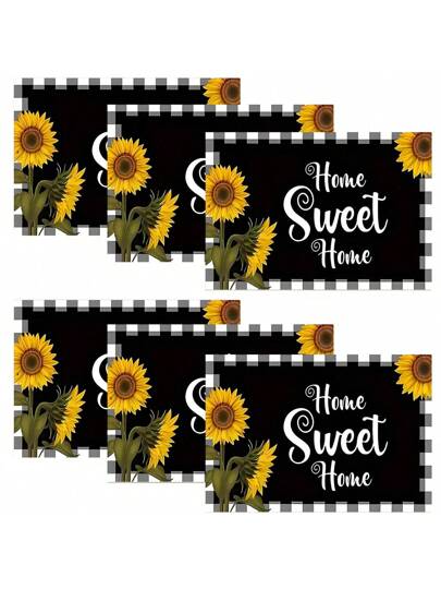 1 件/4 件/6 件餐垫套装,水牛格子设计向日葵印花餐垫,几何图案桌垫配亚麻耐热餐垫,适合户外、家庭聚会和厨房用餐派对 - 彩色 - 查看 6