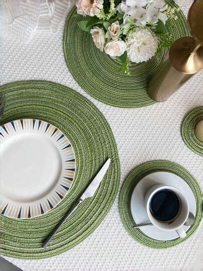 1 件/4 件/8 件圆形编织杯垫(18 厘米)/餐垫(36 厘米),家用圆形防污防烫可洗厨房餐桌垫,适用于家庭聚会、婚礼、派对、日常使用,绿色 - 綠色 - 查看 1