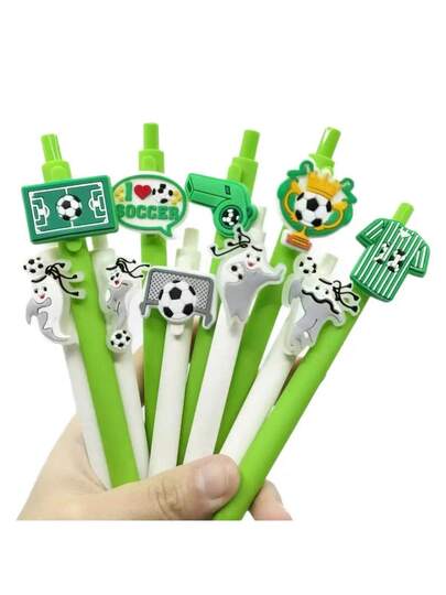 1支/5支/10支套装创意足球主题圆珠笔,俏皮可爱的绿白足球图案,办公文具书写笔[圆珠笔、速干笔、中性笔],学校用品,可爱的签名笔,适合女孩和学生,课堂奖励,返校礼物 - 彩色 - 查看 10
