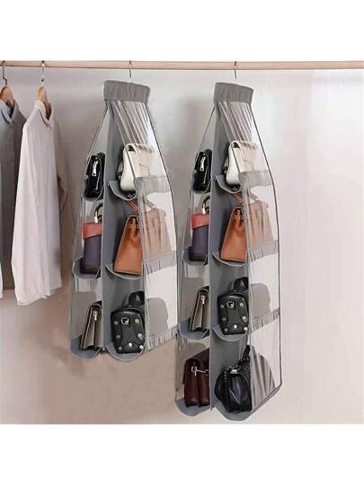 1 件,6/8 口袋挂式钱包手提包收纳袋透明挂架包收集储物架钱包包衣柜壁橱节省空间的收纳袋万圣节装饰万圣节服装秋季装饰节日装饰 - 灰色 - 查看 1