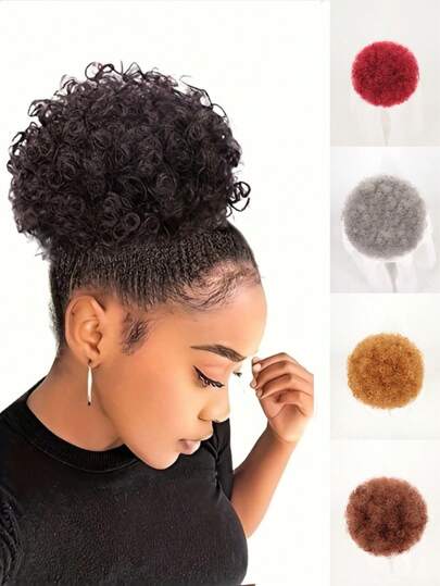 1件装6英寸短款非洲卷发发髻马尾假发,合成扭辫发髻马尾夹式接发,适合派对、圣诞节、万圣节等场合