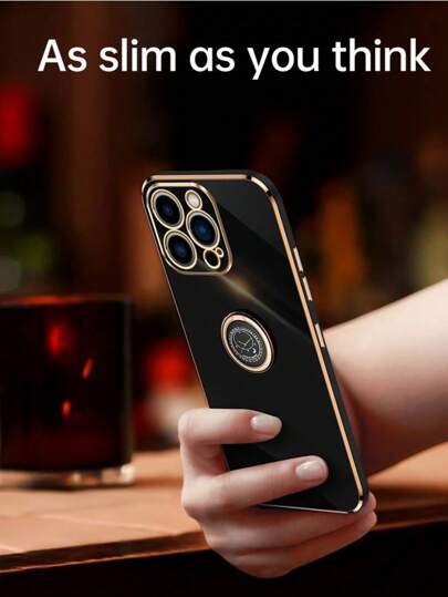 1 件 6D 电镀纯色环形握把手机壳适用于 Apple 16、16PM S24、S24U、A14、154 - 黑色 - 查看 3