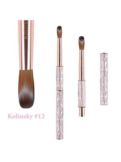 1支8-12号貂毛亚克力美甲刷,亮粉色金属手柄,适用于亚克力美甲,专业美甲延长工具 - 粉色 - 查看 8