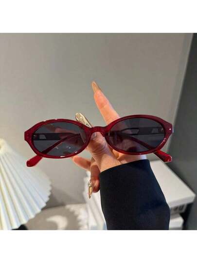 1pc 90s Vintage Oval Red Fashion Fashion Glasses, Metal Temples & PC Frame Design - Perfect Summer Accessory, Providing Elegant Retro Style For Summer Beach Vacation,Outdoor,Travel