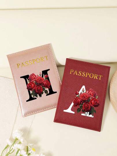 1 件 A-Z 26 个字母时尚字母印花时尚勃艮第护照套,优质 PU 皮革护照钱包,带多个卡袋,可放置信用卡、登机牌 - 酒紅色 - 查看 89