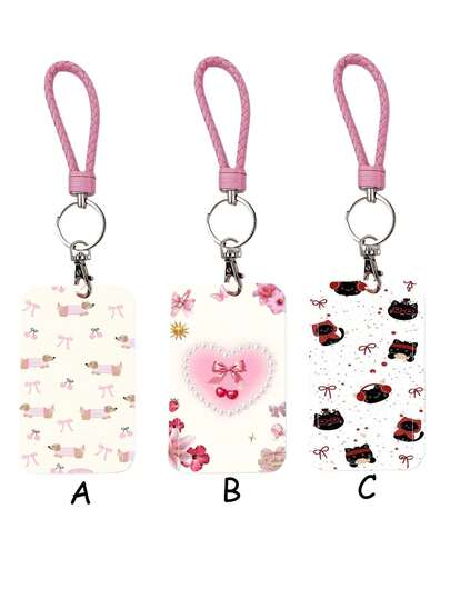 1个ABS粉色绳猫狗图案钥匙扣吊坠,可作包包挂饰、身份证/公交卡/门禁卡夹,适合四季日常使用 - 長方形 - 查看 10
