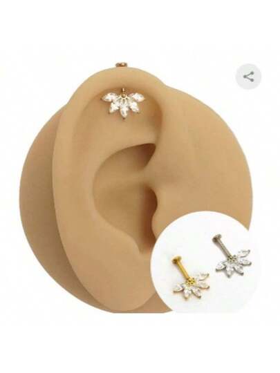 1 件 ASTM F136 钛金属穿孔内螺纹耳钉 CZ 唇钉耳环唇环海螺耳洞 16G 垂直耳线珠宝 - 直桿內牙耳骨釘 - 查看 1