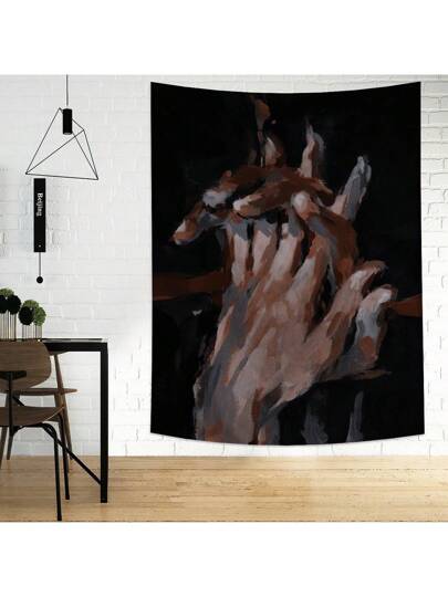1 件抽象手工印花挂毯,适用于客厅、卧室、办公室墙壁装饰、家居装饰、派对装饰,具有垂坠效果的矩形织物壁挂,配有 3 个墙钉和 2 个夹子,壁挂