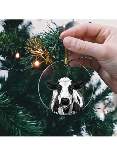 1入組亞克力圓形裝飾奶牛形狀可愛動物飾品,適用於家居裝飾、汽車掛飾、農舍客廳、臥室和戶外節慶裝飾 - 彩色 - 查看 1