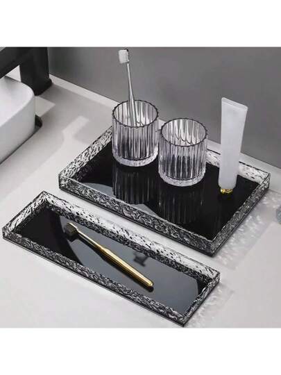 1 件亚克力透明水波浴室收纳托盘家居浴室装饰浴室收纳盒秋季装饰返校 - 黑白 - 查看 1