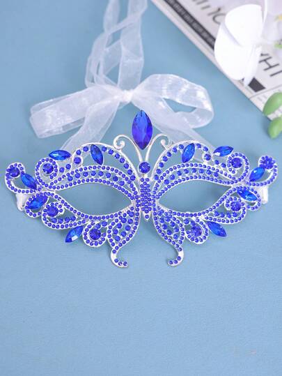 1 件可调节水钻锌合金派对面具,时尚配饰 - 藍色 - 查看 1