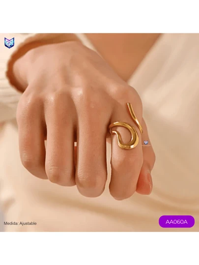 1pc Adjustable Ring Irregular Design Made Of 316L Stainless Steel - 金色 - 查看 1