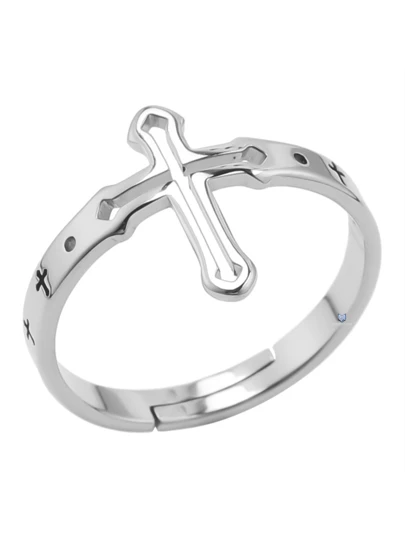 1pc Adjustable Ring With Cross Made Of Stainless Steel - 銀色 - 查看 1