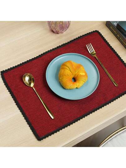 1個美式復古亞麻編織墊蕩,純色亞麻隔熱桌墊,杯和碗的鏤空圍邊杯墊,ins風格