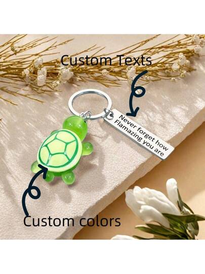 1 件动物不锈钢夜光小乌龟钥匙扣,男女通用新奇创意定制启发欣赏小礼物 - 彩色 - 查看 1