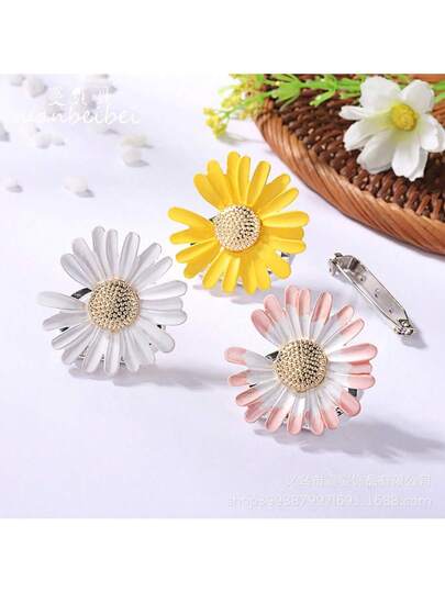 1 件防滑雏菊丝巾夹胸针,可用作服装配饰,多种颜色可选,独特随机设计,适合作为圣诞节、新年、情人节的节日礼物 - 彩色 - 查看 1