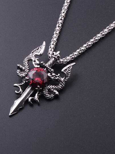 1入組古董紅色的寶石雙中國龍吊墜項鍊適合女士哥特式長鏈項鍊 - 紅色 - 查看 1