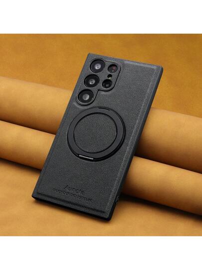 1个Aunote高品质荔枝纹PU皮革360°旋转指环支架磁吸保护手机壳,表面舒适,旋转指环顺滑,适用于流媒体、办公、摄影等场景,支持无线充电和车载支架,兼容三星Galaxy S23 Ultra/S24 Ultra/S25 Ultra,男女通用高级礼品 - 黑色 - 查看 6