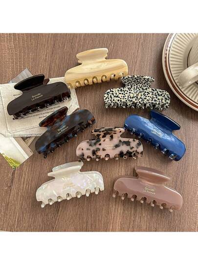 1个秋冬韩版法国Logo极简醋酸纤维发爪夹,复古法式优雅盘发发爪,强力防滑发夹,适合浓密、长发、卷发、波浪发,秋季发饰,冬季发夹,豹纹发夹,时尚发饰,适合度假装扮,女士夏季海滩度假发夹