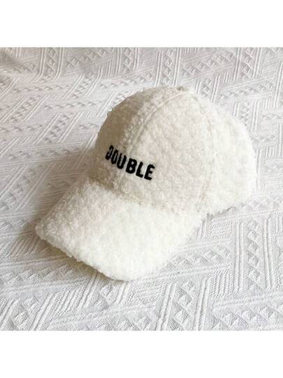 1頂秋冬新款加厚仿羊皮棒球帽,繡有字母,男女通用的休閒保暖平頂帽 - 白色 - 查看 1