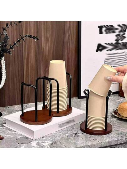 1 件竹木纸杯架、纸杯分配器、多功能杯架、家用厨房用品、适用于咖啡杯和茶杯 - 适合家庭和商业用途! - 彩色 - 查看 1