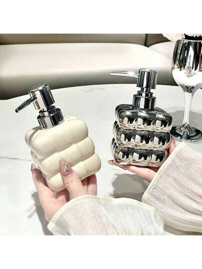 1入浴室洗漱用品分配器瓶,適用於豪華飯店或家庭使用,可裝肥皂、洗髮水、沐浴露乳液,配有壓力泵 - 棉花乳液瓶(銀色) - 查看 2