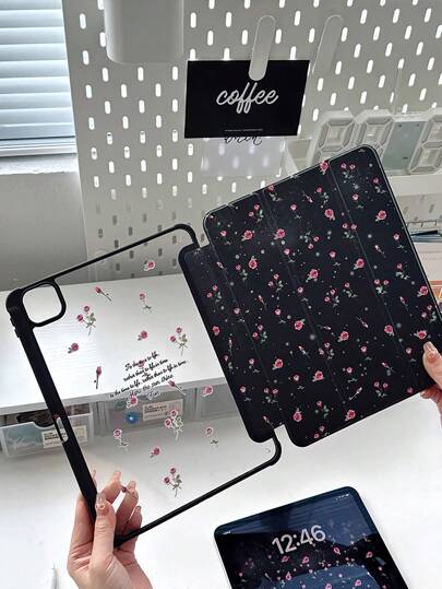 1 件美丽可爱的花卉和字母双面亚克力水晶透明平板电脑保护套,具有防摔支撑睡眠功能,兼容 iPad,是节日的完美礼物 - 彩色 - 查看 1