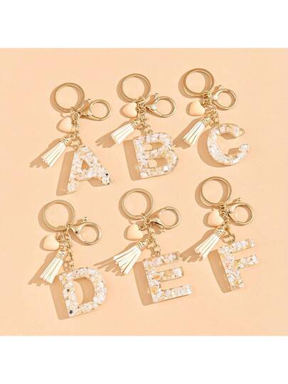 1 件米色心形字母设计时尚简约钥匙扣 - 米色 - 查看 1