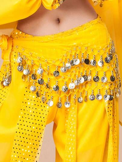 1入腰鏈肚皮舞鐵鍊,適用於泳池派對、夜店和海灘表演,並附有可調節的鏈條 - 黃色 - 查看 1