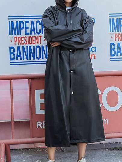 1入組黑色成年人尺寸雨衣,防水,透明,一次使用,便攜,時髦 - 黑色 - 查看 1