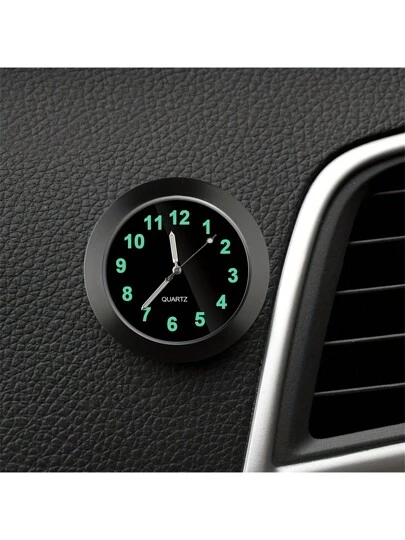 1只黑色發光裝飾時鐘汽車時鐘迷你石英類比汽車儀表板時間貼紙式時鐘車內裝飾專屬於高端車輛中央控制裝飾桌面 - 黑色 - 查看 1