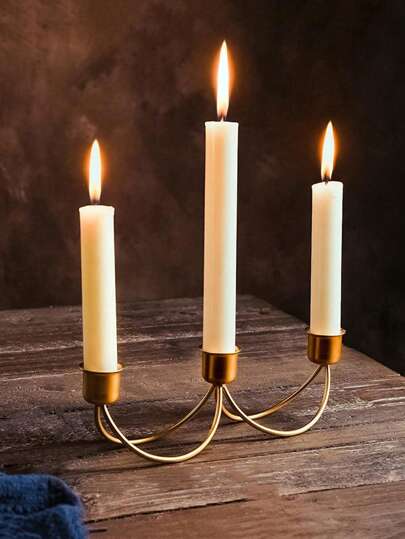 1个黑色金属三头欧式烛台,适用于家庭办公室、情人节、婚礼、生日等场合 - 金色 - 查看 1