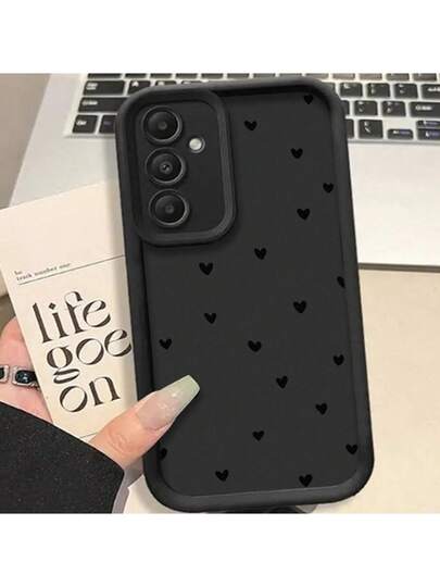 1 件黑色小心形图案简约黑色手机壳,防震软壳保护套适用于 Apple/Redmi/Infinix/Note/Vivo/OPPO/Honor/ 手机防水防摔防刮 - 彩色 - 查看 1