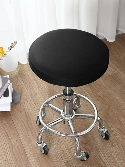 1 件牛奶丝弹力圆形脚凳/凳套,适用于家庭卧室客厅餐厅,宠物友好型 - 黑色 - 查看 1