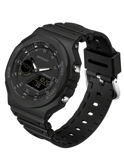 SANDA 1入黑色TPU錶帶運動計時日曆鬧鐘24小時防水圓錶盤數位錶,適用於日常生活