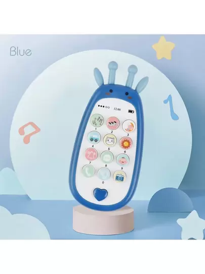 1入藍色長頸鹿造型嬰兒玩具手機,具有模擬音樂和可咬的材質,適合6-12個月的生日禮物 - 藍色 - 查看 3