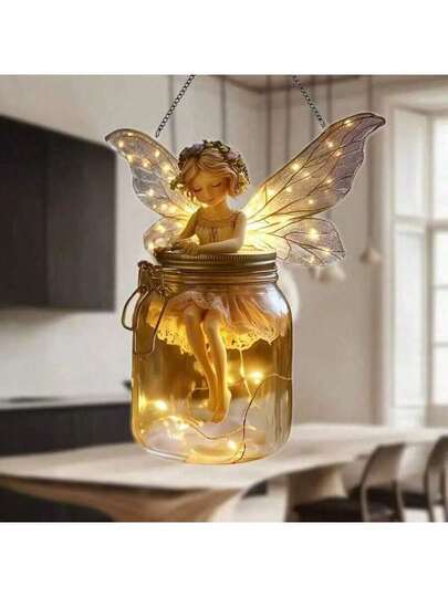 1 件波西米亚风格亚克力罐,带有仙女设计 - 富有想象力的梅森罐设计,非常适合情人节和复活节装饰,无需电池,是情侣、家居和花园装饰的完美礼物