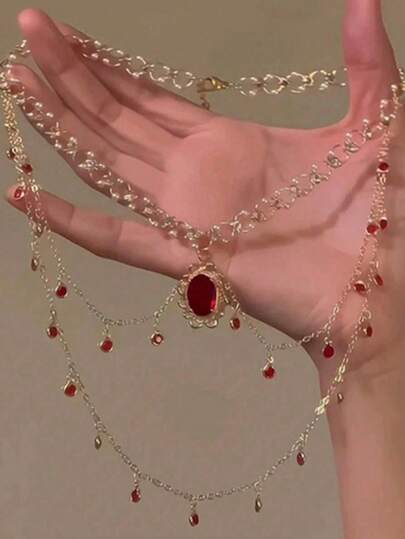 1件波西米亚风优雅祖母绿吊坠项链,仿珍珠椭圆形吊坠,闪亮设计,适合派对、休闲佩戴和送礼。