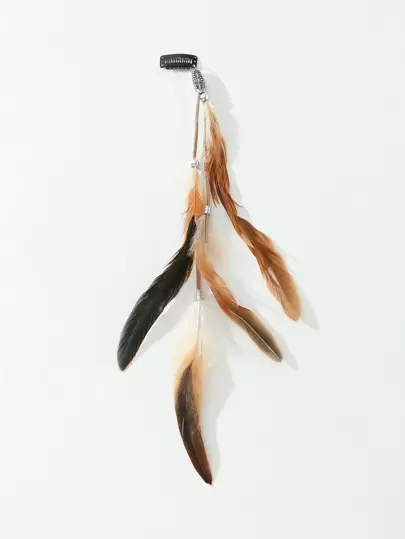 1 件波西米亚风格羽毛吊坠项链发链波西米亚风,Y2k 狂欢节头饰头饰珠宝,发饰 - 棕色 - 查看 1
