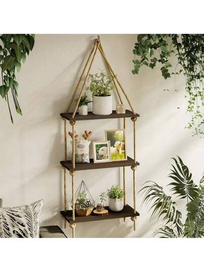 1個波希米亞風格的掛架 - 3層鄉村風浮動式木質懸掛架,適用於客廳,臥室,浴室,幼兒園 - 可愛的小書櫃家居裝飾 - 棕色 - 查看 1